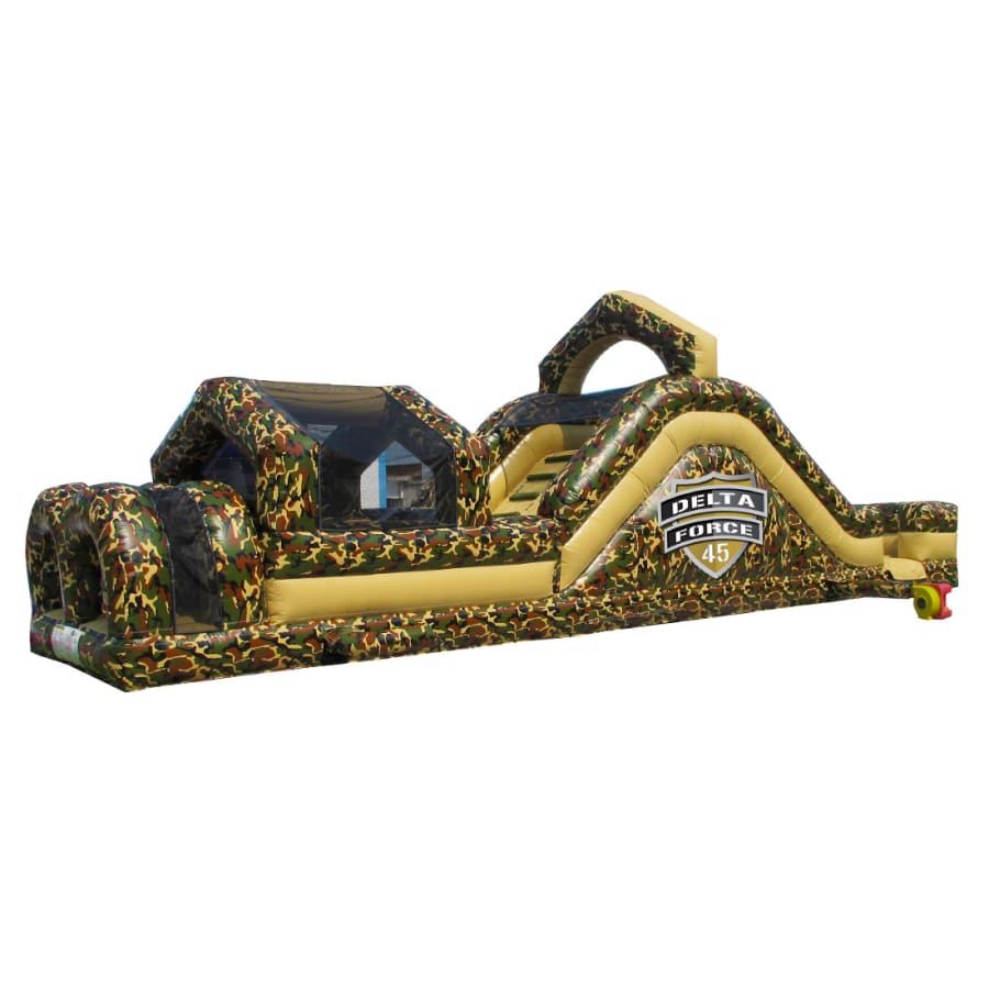Battle your opponent all the way through this 45′ obstacle course, starting at the inflated arches. After that, you encounter the pop-ups, followed by a climbing wall and then to the top of the slide. Who has what it takes to compete in the Delta Force?!