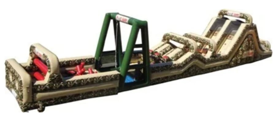 Are you up for the Challenge? Run through Inflated Pillars, Swing on the Rope and slide 20′ to Victory! The Ultimate in Obstacle Course Challenges!